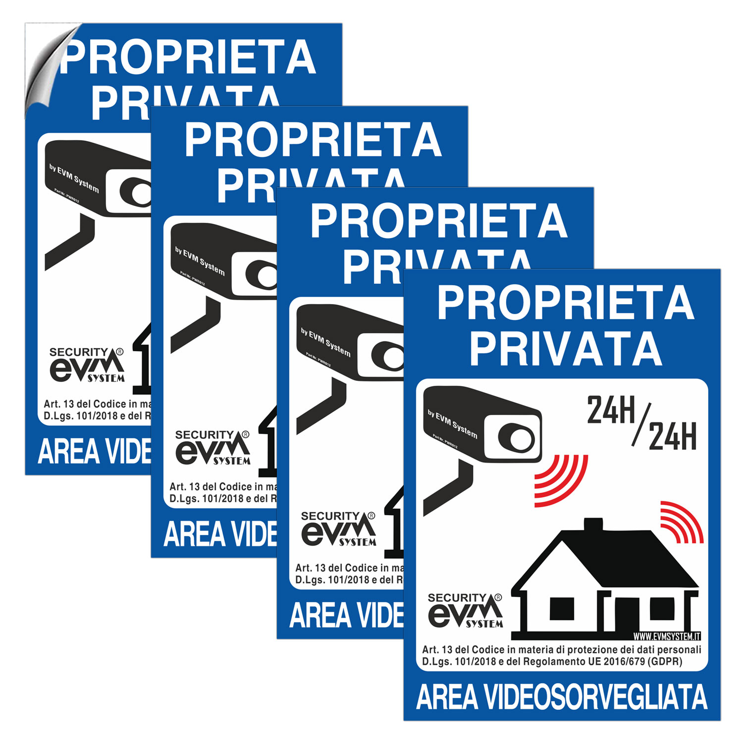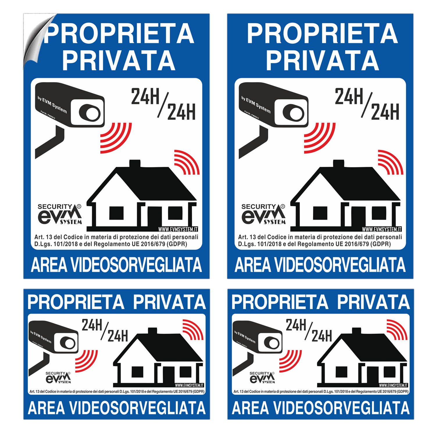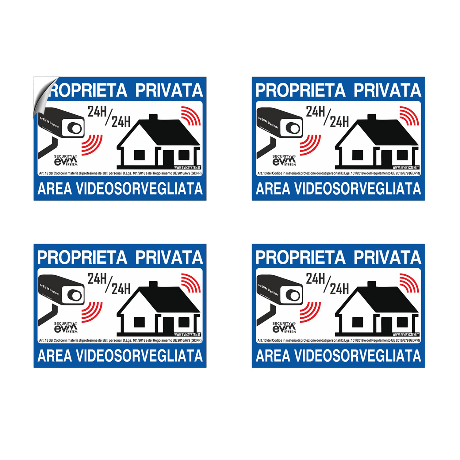 4 Cartelli Area Videosorvegliata 2-10x15 + 2-10x7 cm Adesivi in PVC Morbido Plastificato Opaco Impermeabile per Negozi Aziende Proprietà Privata (BLU-2X10-15+2X10-7)