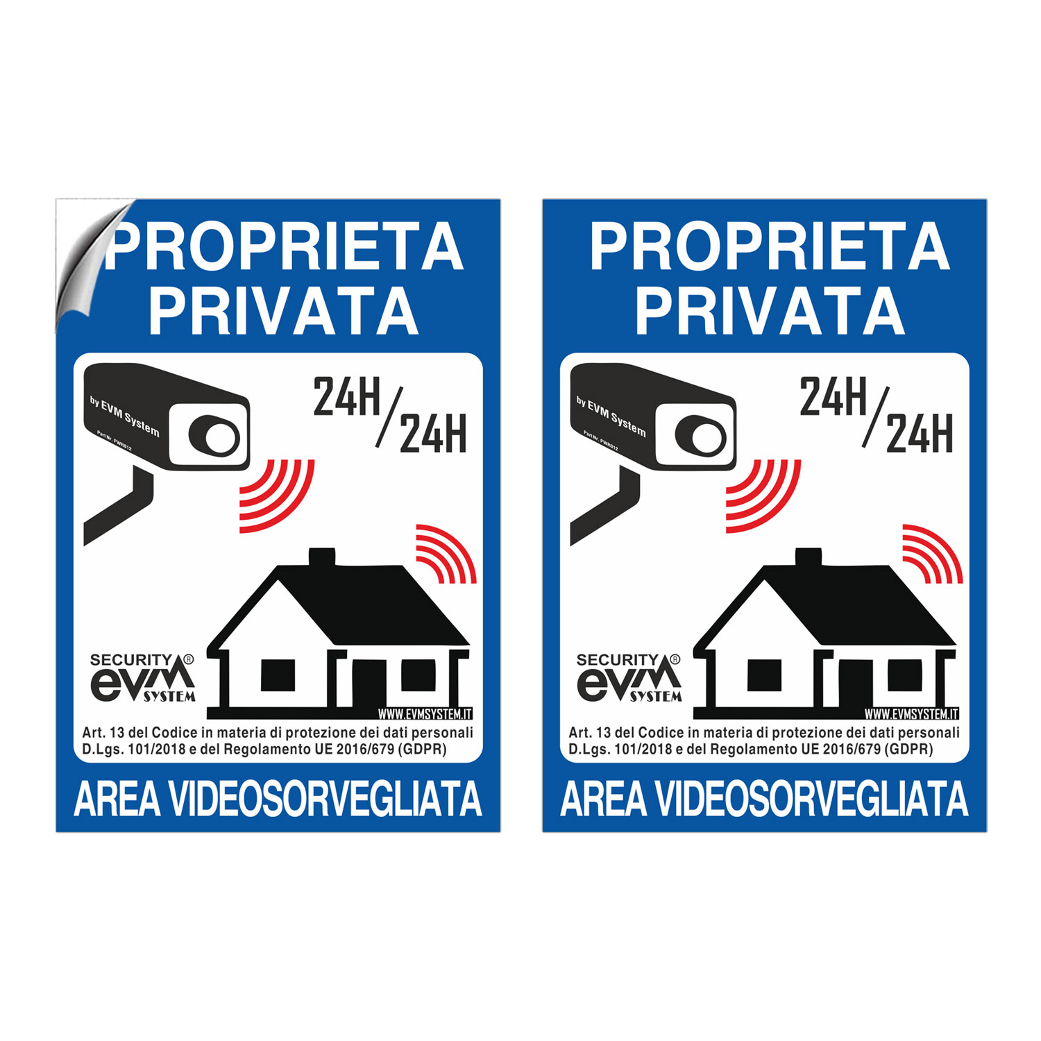 2 Cartelli Area Videosorvegliata 10 x 15 cm Adesivi in PVC Morbido Plastificato Opaco Impermeabile per Negozi Aziende Proprietà Privata (BLU-2X10-15)