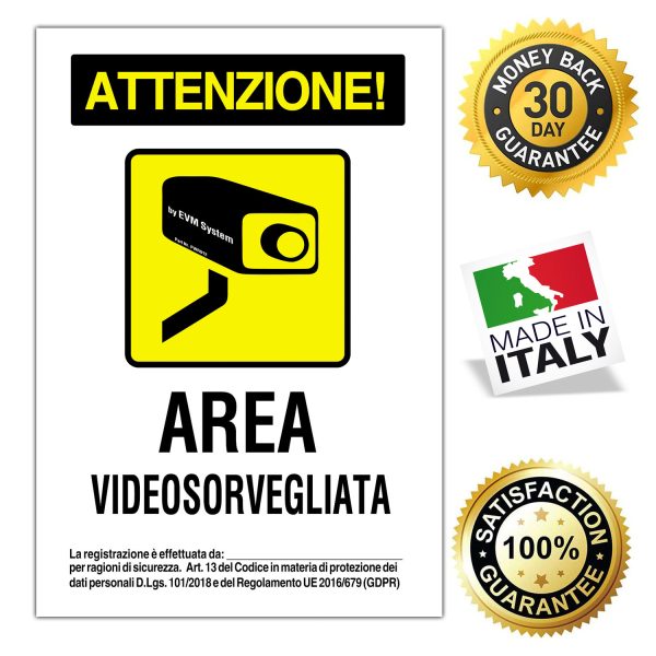 Grazie ai materiali di alta qualità, questi adesivi sono resistenti alle intemperie, impermeabili e protetti dai raggi solari (UV), garantendo una stampa durevole e anti-scolorimento anche dopo lunga esposizione alla luce e alle condizioni atmosferiche. La grafica ad alto contrasto rende immediatamente comprensibile la presenza della videosorveglianza, aumentando la percezione di protezione dello spazio.