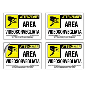 4 Cartelli Area Videosorvegliata Adesivi in PVC Morbido Impermeabile – 4 pezzi 105×73 mm Protetti UV Anti-Scolorimento Interno/Esterno